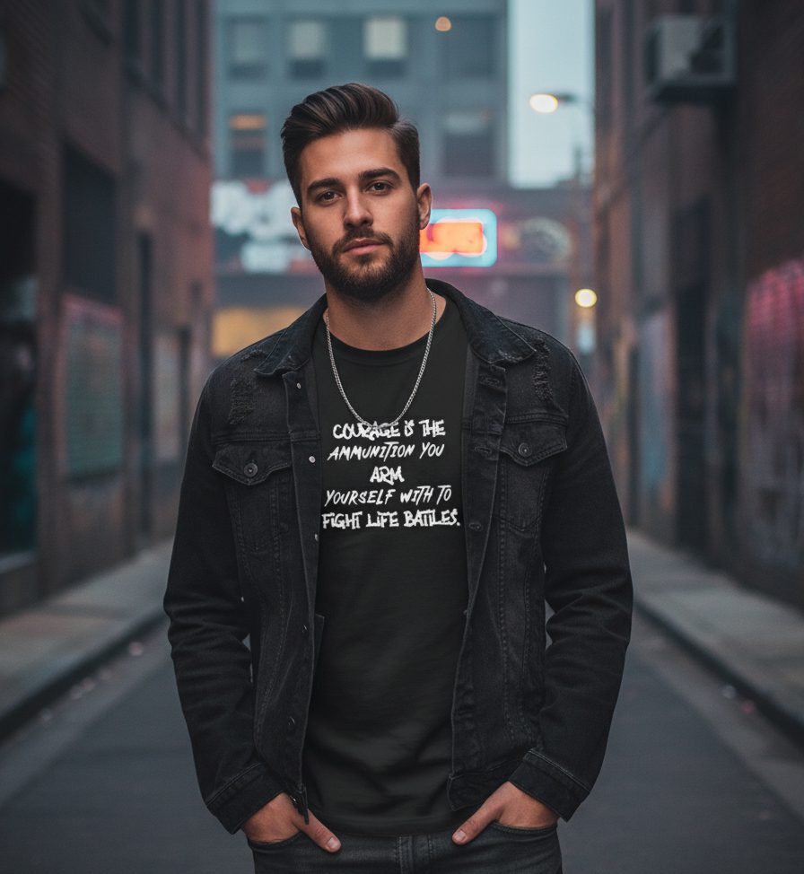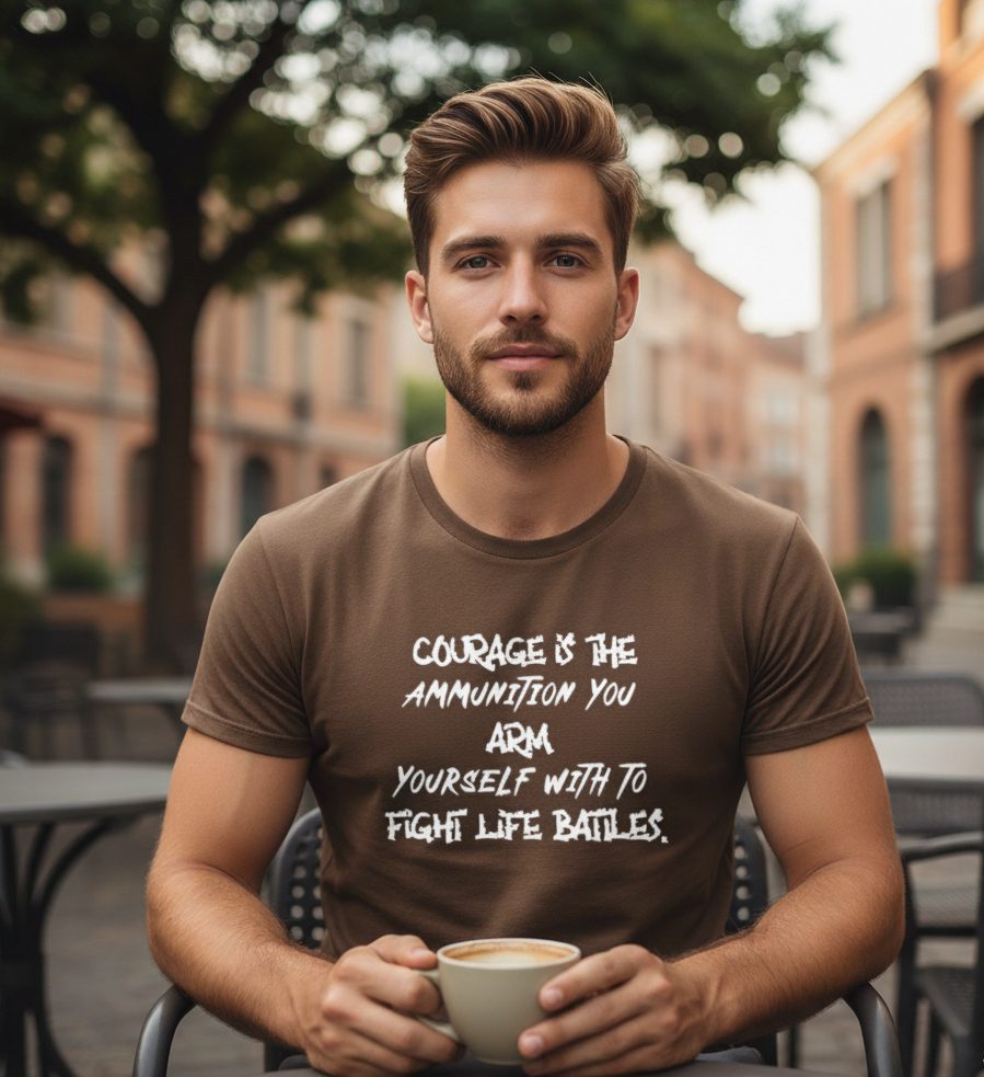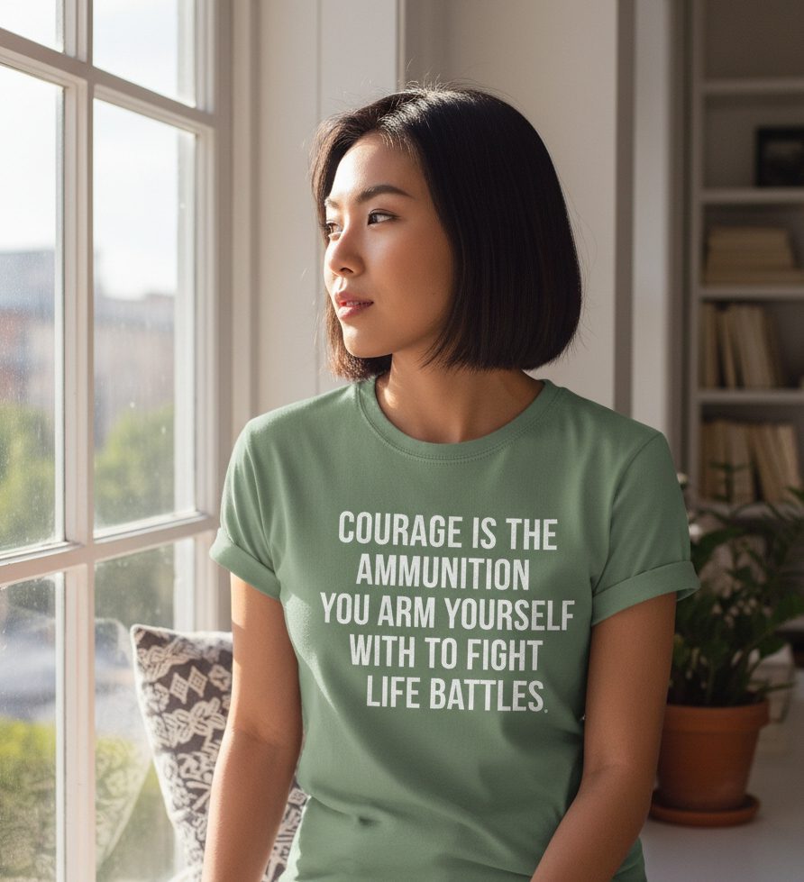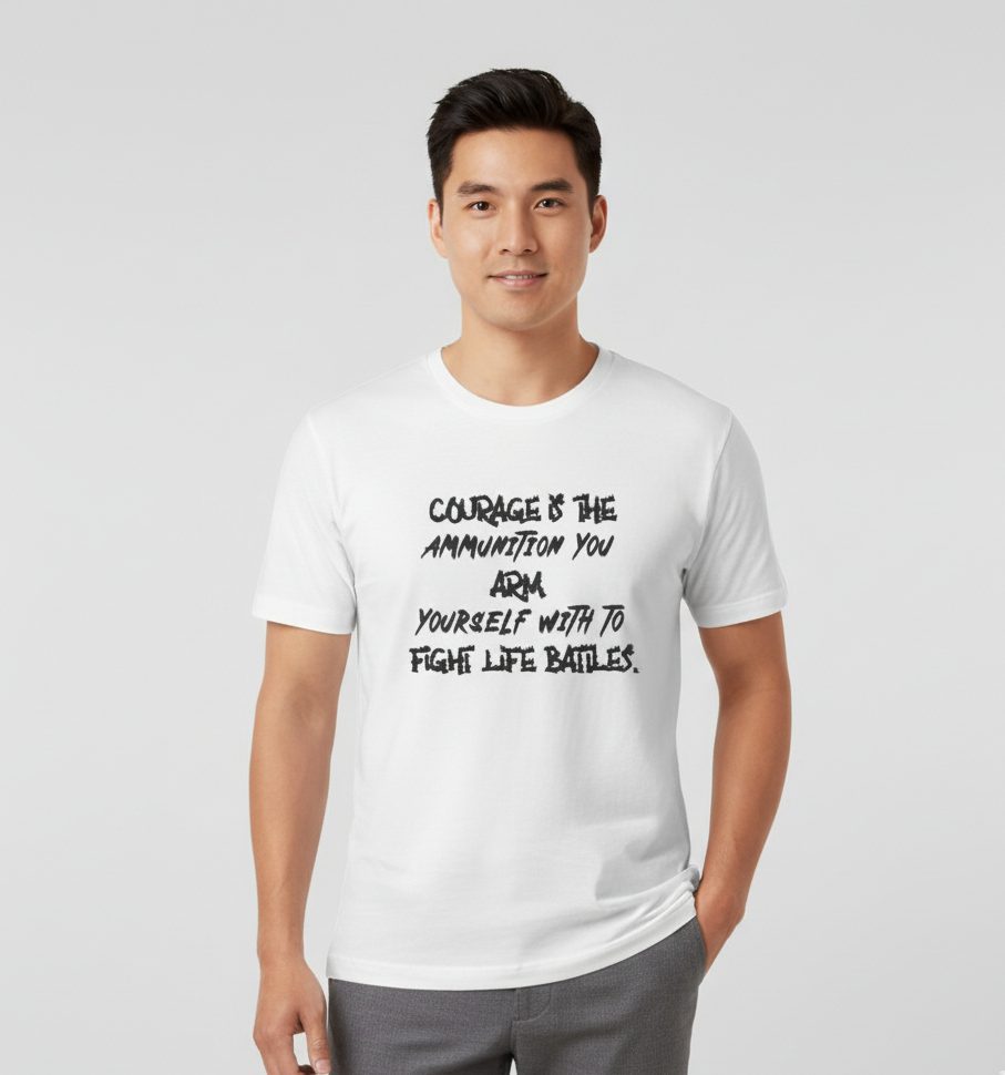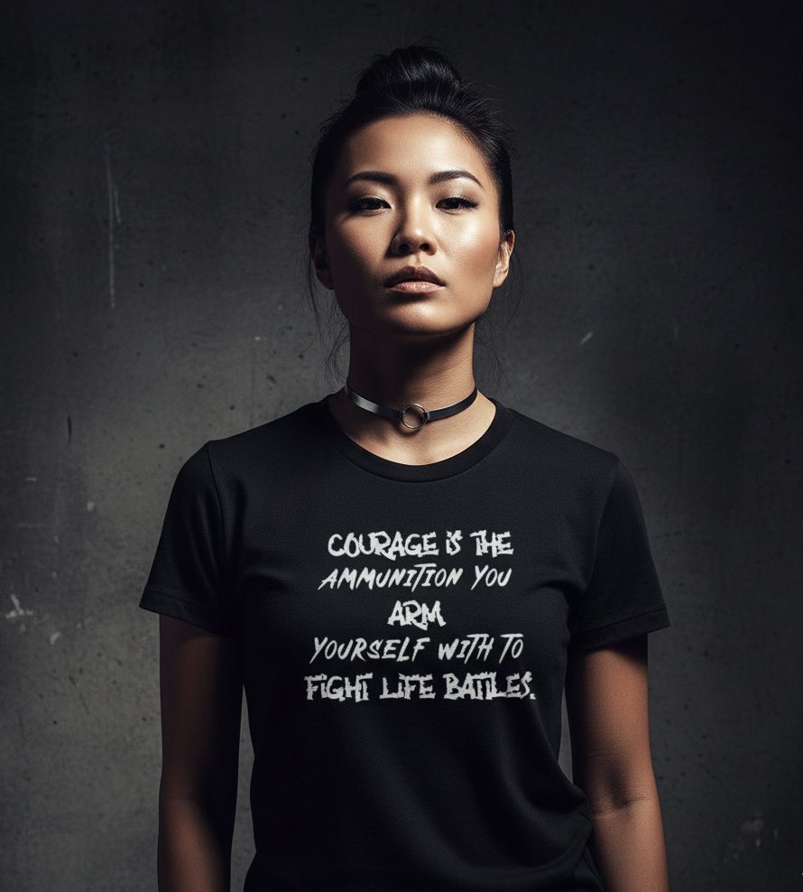 In life’s toughest battles, courage is the ammunition that fuels victory. This tee captures that