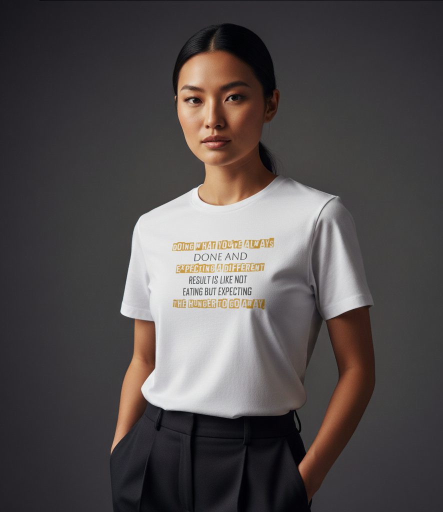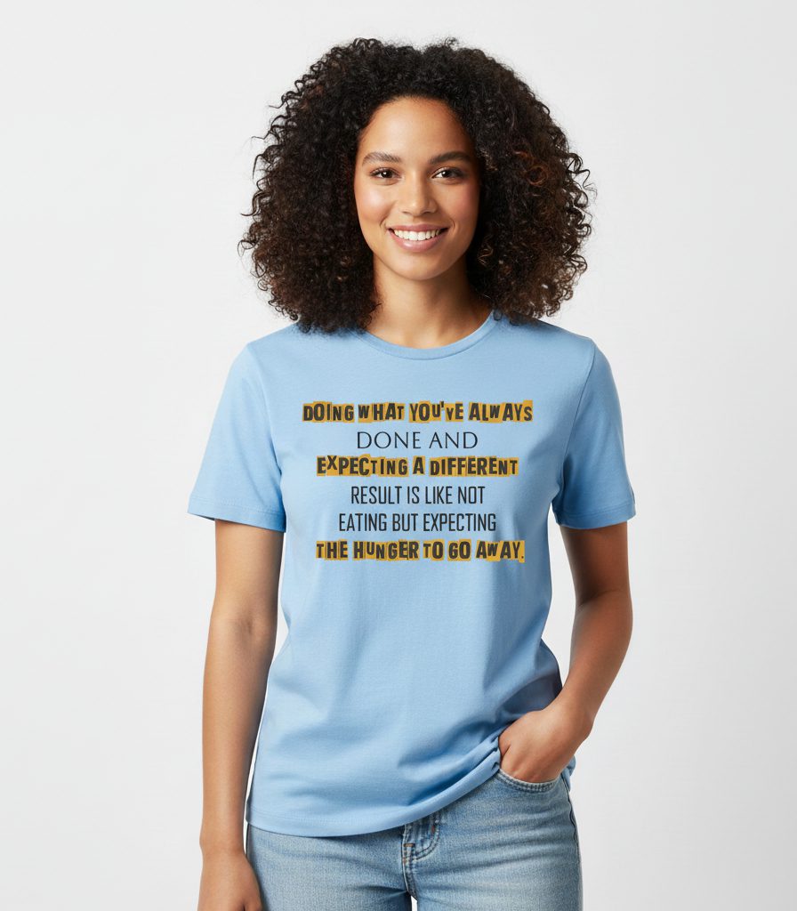 The “Doing What You’ve Always Done” Vivid Tee emphasizes that expecting different results without changing actions is futile. True growth comes from innovation, risk-taking, and stepping outside comfort zones. Made from soft cotton, this Vivid Tee inspires reflection, courage, and the determination to pursue change actively.