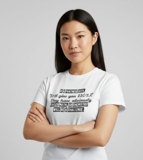 staying grounded in reality. With a crisp monochrome finish, it’s not just funny — it’s stylish,