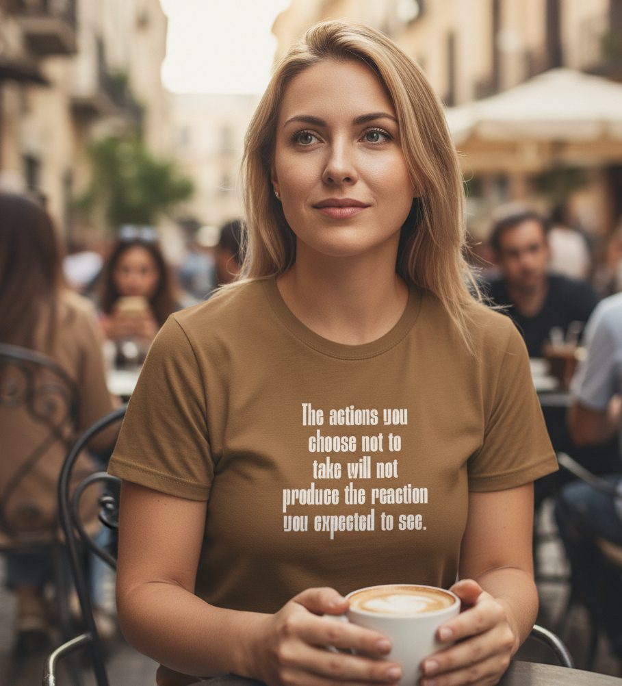 Regret is born from inaction. The The Action You Choose Not to Take Monochrome Tee is a