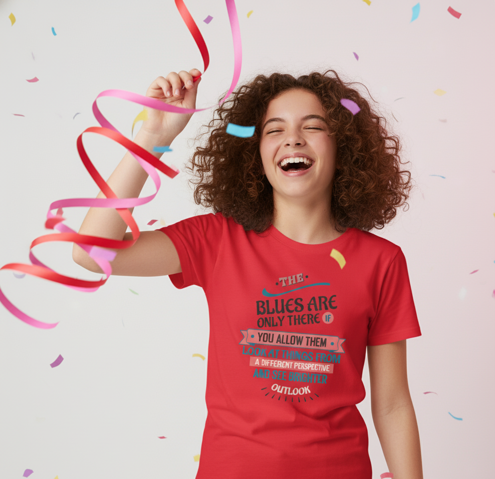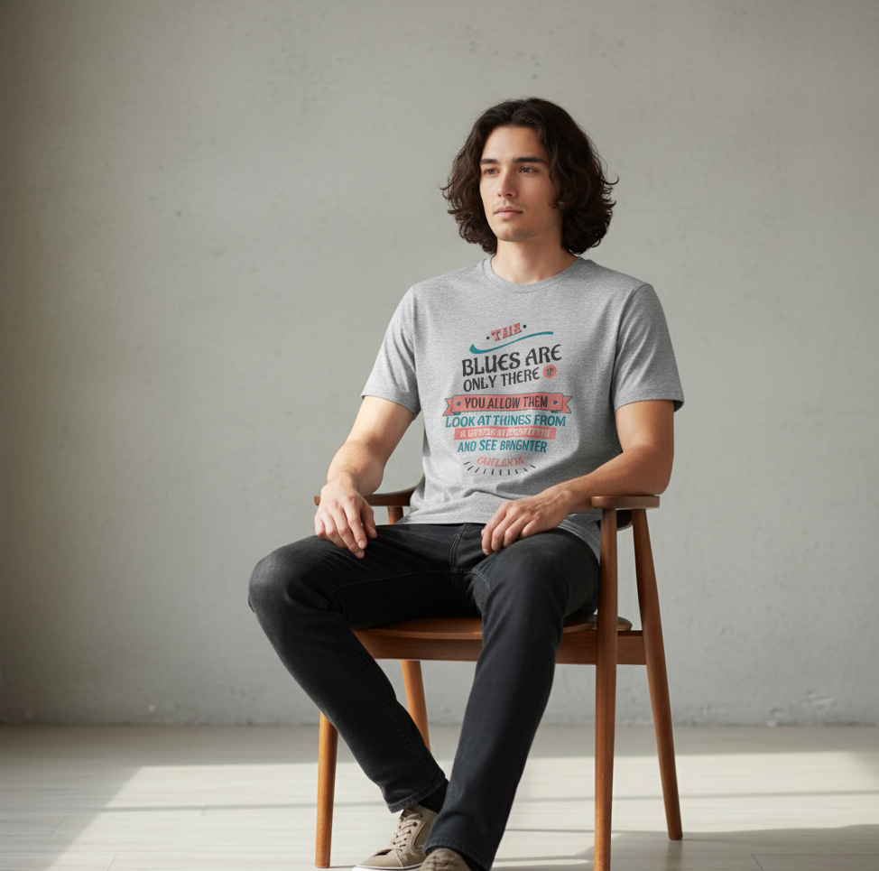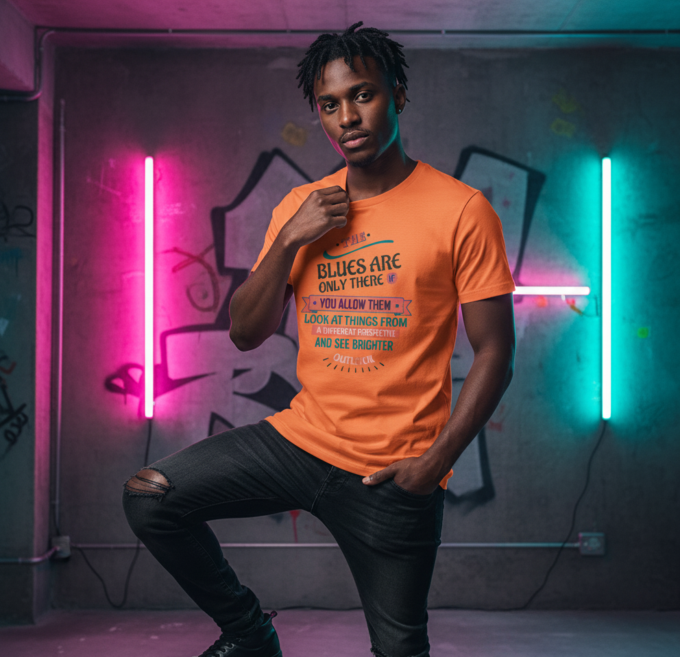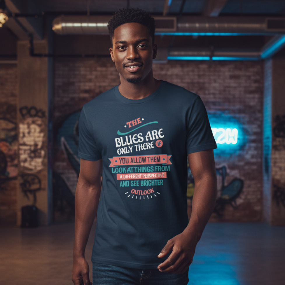 The “Blues Are Only There If You Allow Them” Vivid Tee reminds you that perspective shapes your reality. By looking at challenges from a different angle, you can find a brighter outlook and a renewed sense of hope. Made with soft, breathable cotton, this Vivid Tee encourages optimism and empowers you to approach each day with a positive mindset. Perfect for anyone who believes that attitude can change circumstances and transform life.
