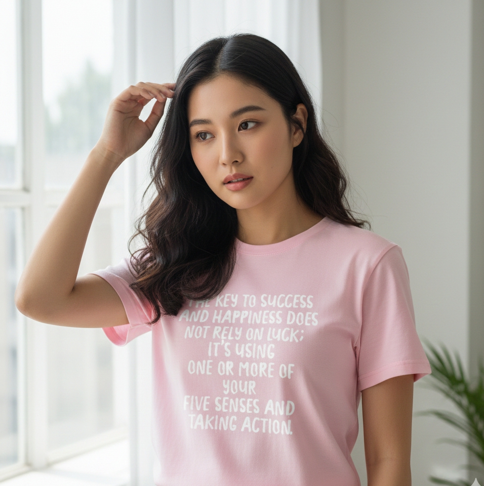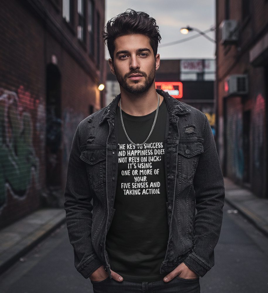 This monochrome tee delivers a timeless truth — success isn’t about luck; it’s about courage,