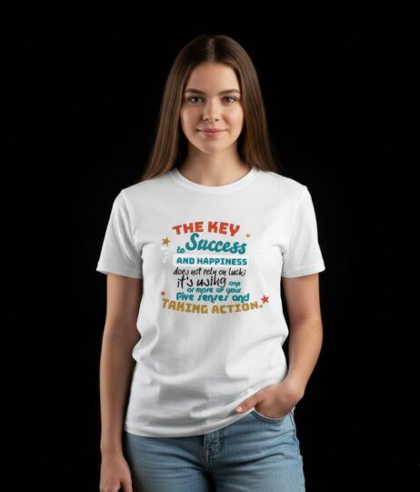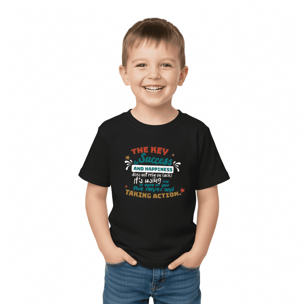 Success and happiness are not a matter of luck—they’re a result of action. The “Key to Success and Happiness” Vivid Tee reminds us that achieving our dreams takes effort, perseverance, and the courage to take action. Made with soft, comfortable fabric, this Vivid Tee is perfect for young achievers who are learning the importance of effort and action in shaping their future. Whether they’re hitting the books or stepping out to tackle a challenge, this Vivid Tee will keep them motivated and inspired.