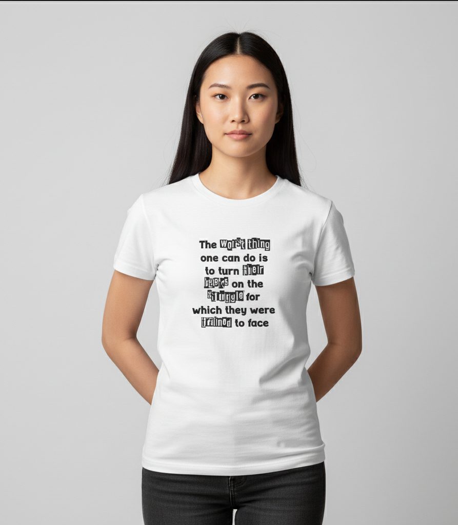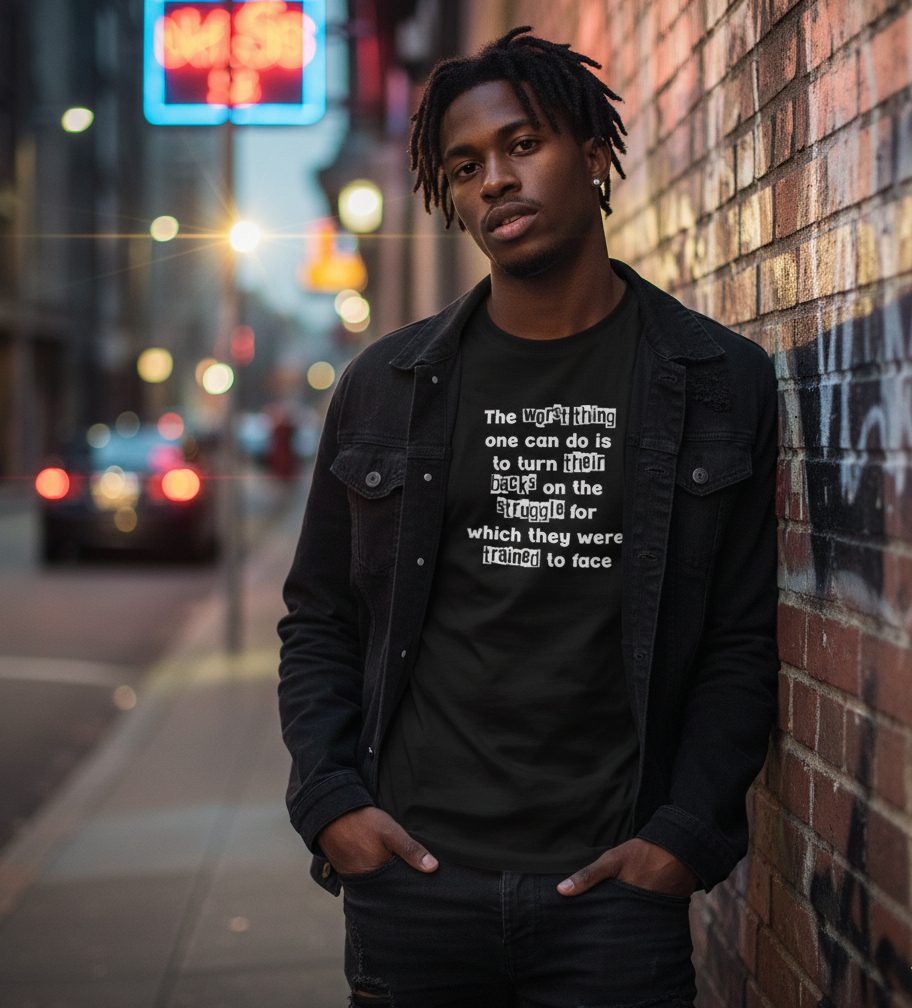 The Worst Thing One Can Do Monochrome Tee carries a reminder — inaction is often the