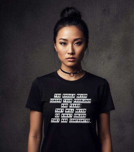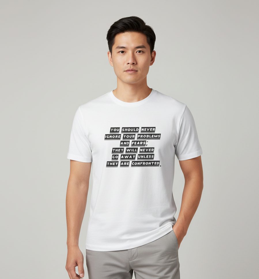 Your Problems and Fears Monochrome Tee challenges you to confront discomfort, knowing it’s